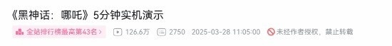 《黑神话: 哪吒》真人“实机”爆火! 24小时播放破百万